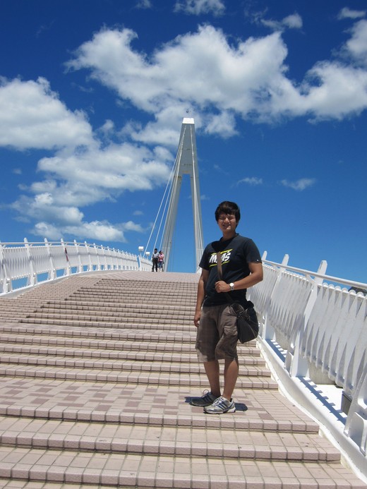 我可沒來過,吧。但那座潔白的橋,卻很有印象。因為誰和誰和誰只要來淡水,就會有這麼一座橋,儼然是淡水的地標。上次無暇拜訪,急著買鐵蛋走了老街一圈便搭北捷到北車,趕車回後龍。漁人碼頭?聽了數年倒是頭一次來,走在「藍水公路」通往漁人碼頭的水上,風景顯得更加「乾淨」,好像今天的淡水是專屬於我們的。安靜,而又潔淨。