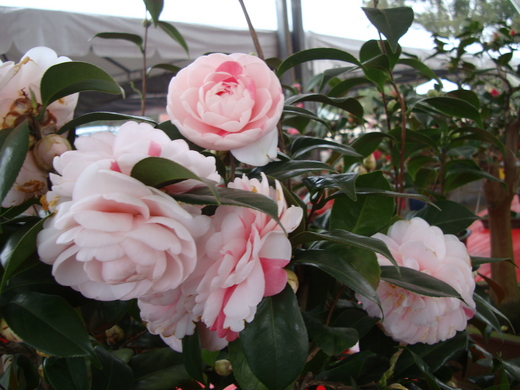騎在都市時,對於幾乎一段路一個紅燈感覺頭大,後來我自我安慰說那是旅程中應有的一段又一段的休息。而現在騎著罕無人跡的路上,卻感覺更可怕,時時想著車子若半路拋錨該如何急救。旅程確實充滿著危機,但這即是探險的樂趣。新埔「鎮」到了,到了一個較為繁華之處心情也放鬆了許多。騎在義民路上,也沒有拜訪義民廟,純集章之旅是一個章與一個章的「趕集」,但這是交通、時間等諸多考量,若缺了某一個鄉鎮可能下次不會特地為了「章」而來,因為路線都是經過設計的。說是這麼說,我仍拐進了一個茶花活動,看見一棵棵美麗茶花。