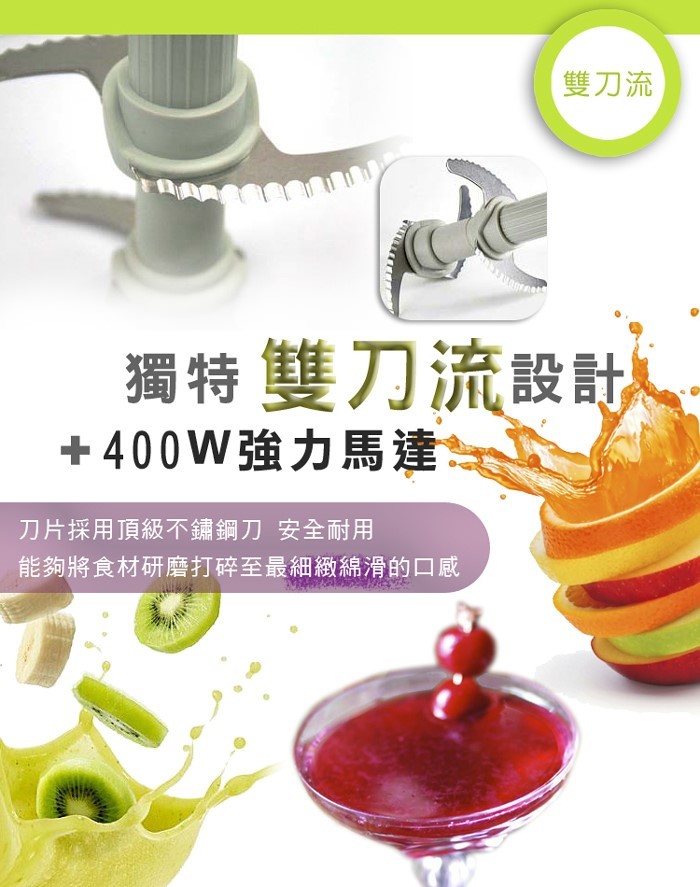 ◎最高轉速3000rpm/MIN,攪拌快速好方便!獨特上下雙刀循環對流,迅速攪打食材,減少過度攪打,夏天打冰沙、果汁給小朋友喝,健康營養又|◎快速!