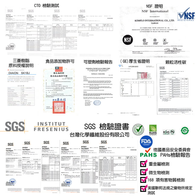 ◆採用進口高級椰殼活性碳製造,濾材通過NSF認証