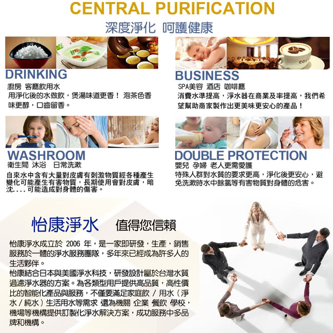 、氯氣、VOC、異色、異味其他液體中的污染物;多重淨化水質,全效有效多重過濾,全方位多重過濾提昇飲用品質。
