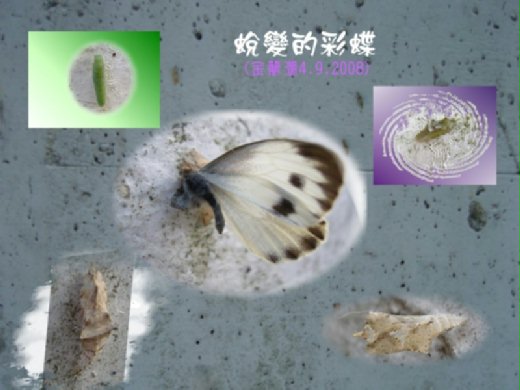 昨晨湖邊約莫一坪大小的水泥牆上 毛毛蟲. 蝶蛹. 正在羽化及剛羽化還不會飛的粉蝶. 緩慢地移步展翅 .還有一旁搖曵寂靜的空蛹. 同時呈現在眼前. 驚豔的當下相機居然沒電!?-----!啊! 啊! 傍晚再來就只剩下畫面上這些了 .而今晨的大雨簡直就是場浩劫. 什麼都不見了! 能不悵 惘 嗎!