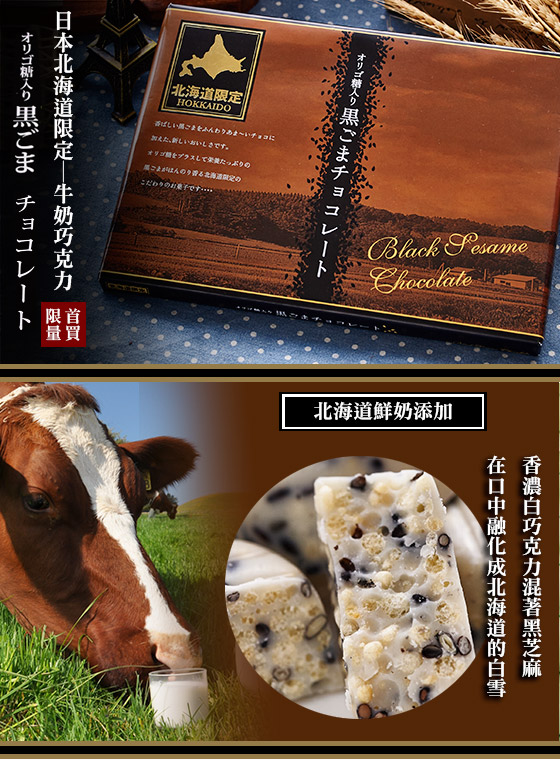 成分:砂糖、可可黃油、植物油脂、小麥粉、脫脂粉乳、全粉乳、黑芝麻、低聚醣、甘藷澱粉、麥芽抽出物、食鹽、乳化劑(大豆由來)、香料、膨脹劑
