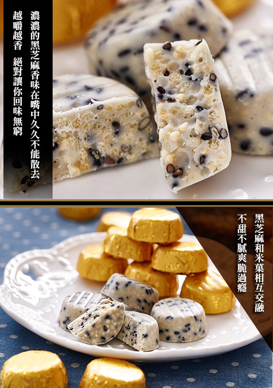●黑芝麻和米?在巧克力之間相互交融,不甜不膩爽脆過癮