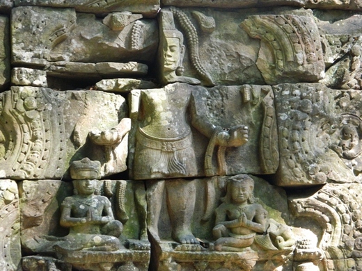 失落的文明,神廟巍峨,得雙手雙腳以五体投地之姿虔誠往上爬,才得以一窺祕境,巨石層層疊疊起一座座氣勢磅薄神廟,即便歲月摧殘、風化、頹傾,仍能遙想當年國力雄厚,彫刻依然精美,細微之處如髮飾、手環…等一一呈現,精緻得讓我流連再三,想像千年前的繁華熱鬧。朋友送我一本蔣勳所著「吳哥之美」,當真正親臨目睹依然讚嘆天工造物,鬼斧神工。