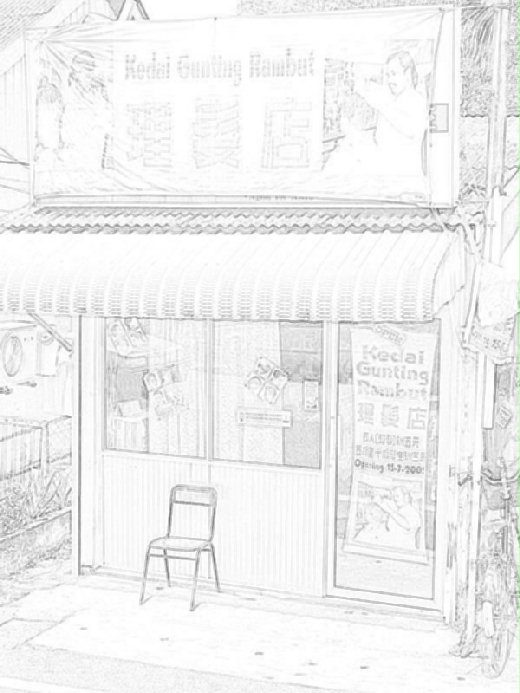 嚓嚓聲劃破店裡的寂靜,老先生專注地為中年人修剪頭髮,中年人的頭髮抹滿了髮油,極有紳士的味道。