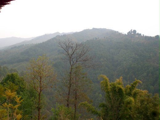 我和Raja一上車就直奔離加德滿都市區約一個半鐘頭時間的山區---納嘉闊特(Nagarkot),車子沿著彎曲的山路而上,沿路的風景真是美到一個不行,山坡旁的梯田、山腳下的住家、山頂上的森林,每一處都是扼殺你記憶卡的好景點。到Nagakot我看到許多的歐美人士沿著山路在健行,想不到在這山區有那麼多的老外在這。
