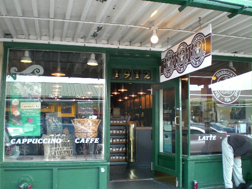 第一家的星巴克咖啡店非常的不起眼,你可能經過它都不知道,原來最原先的星巴克咖啡是在西雅圖岸邊的咖啡進口商,專門做咖啡豆的進出口生意,而早年在岸邊的碼頭工人、市場的商人或剛返航的船員、漁夫們一到休息時間就在這裡喝杯咖啡休息一下或聚集一起的談天說地,久而久之就把這西雅圖的咖啡文化傳了開來,雖然星巴克的生意越做越大,全世界有幾千家的連鎖店,但這第一家的星巴克始終保持著最原有的面貌一點也沒有改變,這種最原味的感覺,讓所有第一次來此的遊客也不忘的點一杯香醇的卡布奇諾。