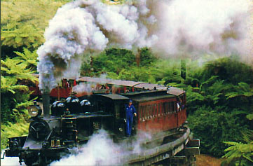 我帶著一行人先從郊區玩起,墨爾本的郊外也有非常多好的景點,我特別喜歡近郊的普芬古董小火車PUFFING BILLY,這條古董火車是20世紀初,澳洲維多利亞州為了開發偏遠地區所建的,在1953年因為營運不良及鐵道坍方而關閉。但因鐵道沿線居民非常喜愛這條美麗的路線,而後成立了普芬蒸氣火車保護協會,由當地居民做義務工作人員,於1962年重新啟動一直到現在。火車沿線的風景有河谷、湖泊、田園、山麓等保證讓你回味無窮,更特別的是你可以坐在火車的車窗上雙腳懸空在外,放輕鬆的沿路欣賞風景,若你看到沿線的居民,也要不吝嗇的跟他們打招呼,他們會非常的高興回應你。整個行程約一個多小時,你不一定要坐全程,可以選擇其中的一段路線,每天火車都有固定的時段,最好事先預約,不然會坐不到喔!