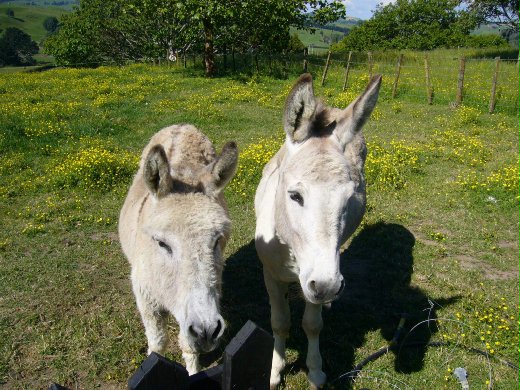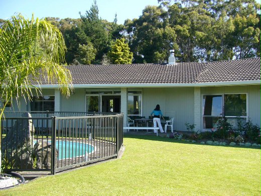 車停在華瑞克的家門前,別墅是一個ㄇ字型建築,當我們進到室內,所有的組員都一口同聲的說:「哇!超溫馨的。」我就說:「這如果是在台灣絕對是豪宅。」所有組員都在頻頻點頭。那種腳踩下去會陷下去的厚地毯,隨便一個轉角就有一幅畫、一盆花,窗台上的小花加蕾絲編的窗簾。我想我這樣的形容大家應該可以想像的出來了。華瑞克及瑪莉帶著我們看他們的房子,並介紹每個房間給各組員,房子裡還有撞球桌、桌球檯甚至還有一個小的高爾夫球練習器,屋外還有一個網球場。反正就是說不出來的好。瑪莉在庭園中準備了一頓豐富的午餐。對了忘了告訴各位庭園旁華瑞克還養了兩頭驢,一隻叫賽門一隻叫珍妮,牠們非常的聽話。我們在用餐的同時,賽門和珍妮就在我們四周圍走來走去的。用完餐後華瑞克就說:「我帶你們去看我的牧場。」我們站在別墅邊看過去就像是在巡視牧場似的。華瑞克就說:「你們有沒有看到那邊那個圍籬?」他指著約