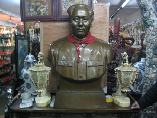 圖三. 古董店裡的毛半身像, 如同被供著一般. 我在店裡買了兩個鼻煙壺, 內繪的人物頗為精巧, 據說是河北的匠人所製.