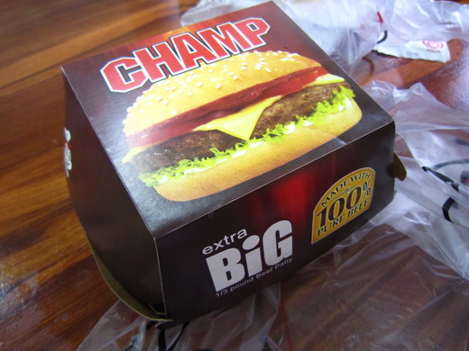 目前還沒嘗試過菲菲的的麥當勞,所以不知道口味如何,但這邊的學生大力推薦一定要試jollibee的champ burger,套餐是130peso,某天去完sm後,買了一個套餐回家當晚餐