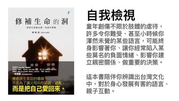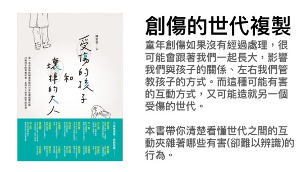 在這些教學和實務工作的經驗中,我發現許多大人(包括父母與教師)也經常是帶著傷長大。因為沒有被療癒,因此我們也在生活中因而受苦、或者一再被學生或孩子碰觸內在的傷口而受傷、爆炸,由有甚之,我們也在無意間做出了傷害孩子、傷害自己的反應。