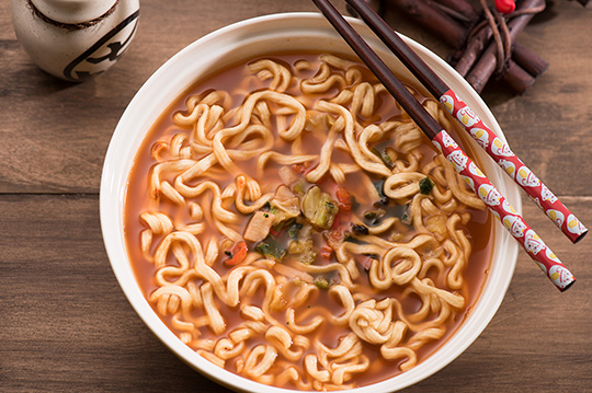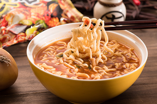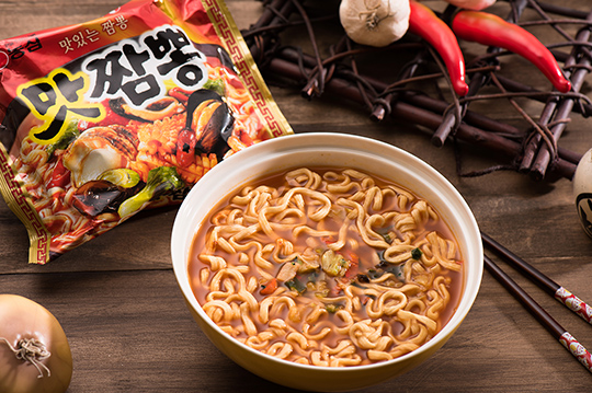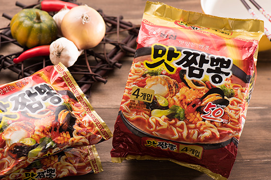 ■成份:小麥粉、馬鈴薯澱粉、棕櫚油、精製馬鈴薯澱粉、麥芽糊精、食鹽、乾燥高麗菜、乾燥白菜、乾燥香菇、乾燥海帶、調味油(玉米油、芥菜油、香料、紅辣椒、大蒜、洋蔥、薑、烏賊抽出物、淡菜抽出物、綠茶抽出物)、牛骨抽出物、螃蟹抽出物粉, 烏賊抽出物粉, 葡萄糖, 5'-鳥嘌呤核?磷酸二鈉, 5'-次黃嘌呤核?磷酸二鈉、琥珀酸二鈉、甜味劑(D-山梨醇)、調味粉(麥芽糊精、高果糖玉米糖漿、胺基乙酸、磷酸鈉, D-木糖)、冷凍乾燥烏賊、冷凍乾燥辣椒(紅辣椒、葡萄糖、食鹽、抗氧化劑(維生素E)、檸檬酸)、大蒜粉、阿拉伯膠、玉米蛋白水解物、大豆蛋白水解物、褐藻粉、大豆卵磷脂、精製玉米澱粉、精製樹薯澱粉、淡菜抽出物粉、香料、洋蔥粉、碳酸鉀、蘿蔔抽出物粉、紅辣椒粉、扇貝抽出物粉、蝦抽出物粉、碳酸鈉、磷酸二氫鈉、偏磷酸鈉、多磷酸鈉、醬油粉(小麥、大豆、食鹽)、香辛料(大蒜、洋蔥、辣椒、黑胡椒)、糖、抗氧化劑(維生素E)、酵母抽出物。