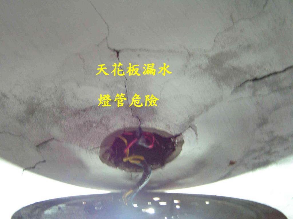 4.建議二:電梯室之內外與天花板,只要有裂縫處都必須以水泥及防水材料補好,不可像上次只做外部,讓內部水泥石塊持續脫落而掉進電梯內,防水工程之驗收,以所有內外牆面及天花板,全部平整為原則。