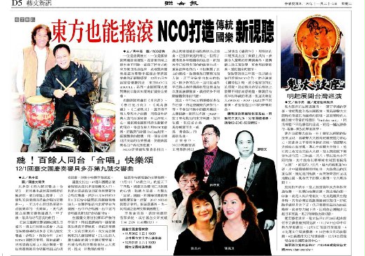 聽!百餘人同台「合唱」快樂頌 12/1國臺交團慶奏唱貝多芬第九號交響曲(2007-11-27/聯合報)