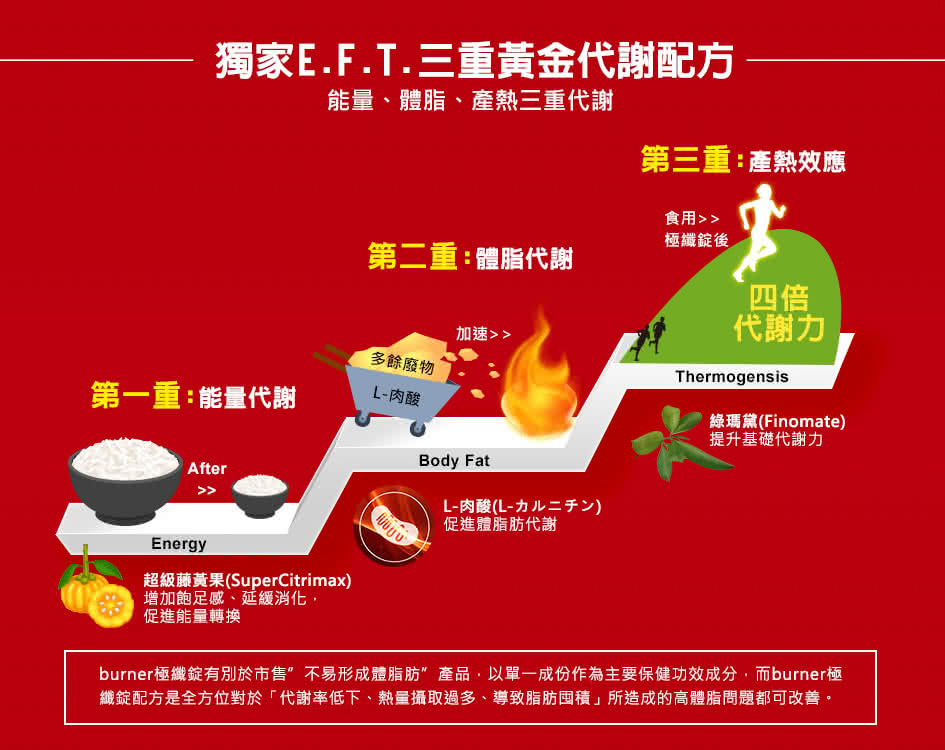 - 獨家E.T.F三重黃金代謝配方