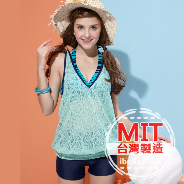 三件式泳裝 台灣製造MIT蕾絲連帽外罩比基尼褲裝泳裝(附帽) 預購【36-66-84133】ibella 艾貝拉