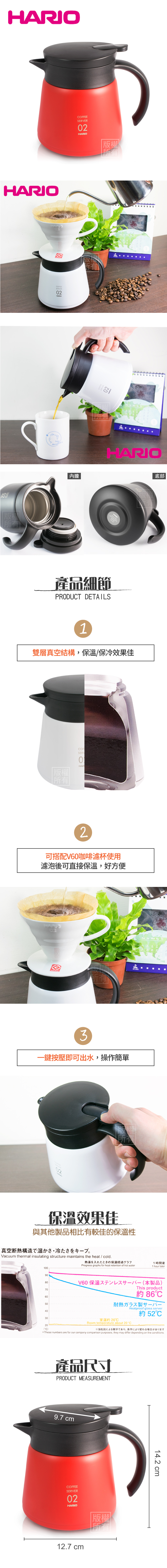 絕佳【HARIO】不鏽鋼真空咖啡保溫壺-紅 (VHS-60R) - 016193508溫度推薦-杯壺茶具