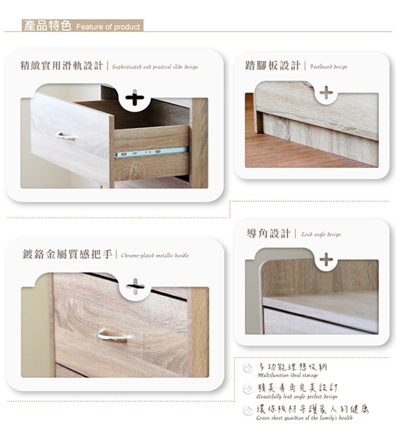 ●五層六抽櫃,六抽設計讓收納更多層次。