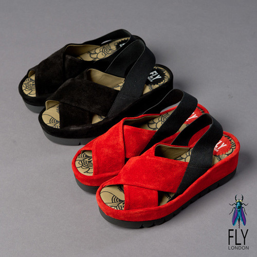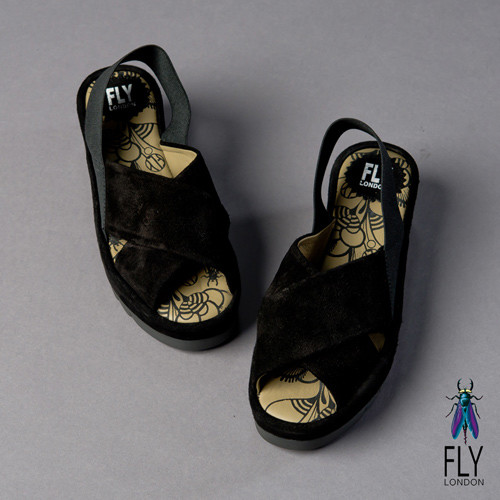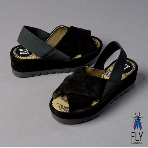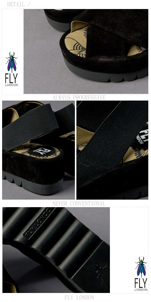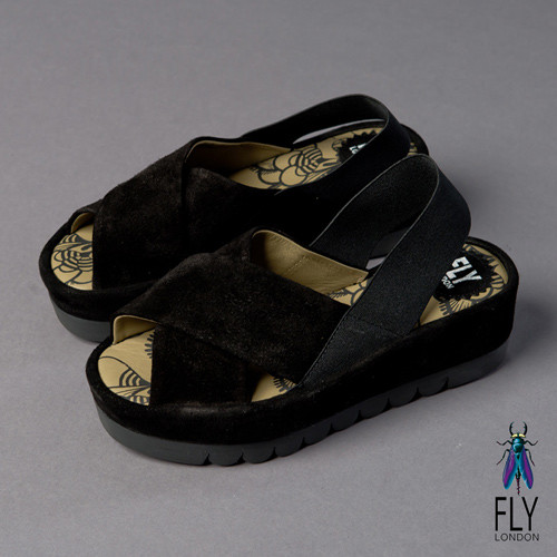 Fly London(女) FAYA 時尚麂皮交叉厚底涼鞋-黑在網路上也是超多人推的