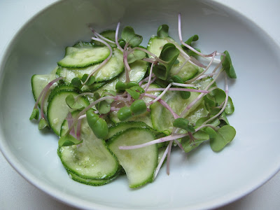 Carpaccio 一般在菜單上,都是牛肉或是鮪魚薄片,在這裡是用夏天常見的蔬菜,挺聰明的,下次可以舉一反三的來試試其他蔬菜,例如:甜菜、紅蘿蔔。