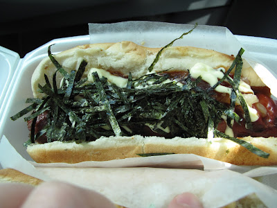 ↑ 最多人點的第一人氣熱狗,Terimayo。牛肉熱狗,加上炒的軟軟的洋蔥和脆脆的海苔絲,淋上照燒醬和 wasabi 美乃滋,真的很日式。不過我覺得他的照燒將太鹹了,然後 wasabi 美乃滋的washabi 味道可以再重一點,這樣會更棒。