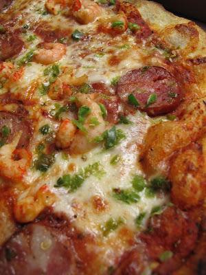 這是我們今天的的 Bayou Beast – BBQ Shrimp, Crawfish, Andouille Sausage, Jalapenos, and Mozzarella. 都是 Cajun 料理裡的主要食材。