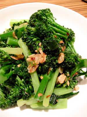 Broccolini 是在這裡超市很見到的一種綠葉蔬菜,是花椰菜和我們芥蘭的混和種,也是我最喜歡的蔬菜之一。因為長相的關係,很多人中文叫它花椰菜苗,它和另一種菜 Broccoli Rabe (通常大把一點,有很多大大的、鋸齒狀的葉子)長得很像,容易把名字搞錯,不過 Broccoli Rabe 吃起來有一點苦味,就像苦瓜和芥菜一樣,看個人喜好。 Broccolini 就比教受大家歡迎,很多不喜歡吃花椰菜的人都喜歡吃 Broccolini。