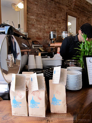 店裡實在不大,是典型的窄長型,好喜歡那整片的磚牆。買一包藍瓶子咖啡豆帶回家是一定是會要的。 |