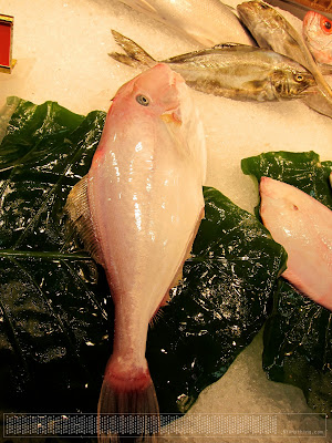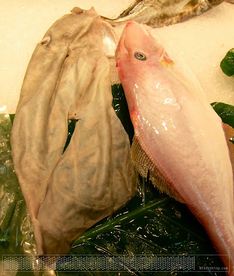 在市場見到的剝皮魚。之前看到的都沒有頭的部份,老闆娘說因為頭的部份沒有肉,所以會先處理掉。這隻是完整的,比較少遇到。 |