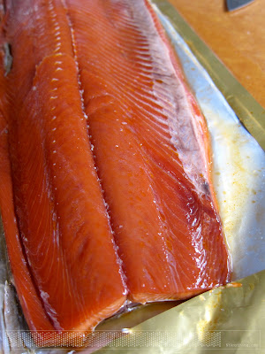 Ann 和 Jeremy 從西雅圖帶回來的煙燻鮭魚(熟的)。美。好吃。 |