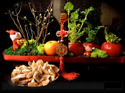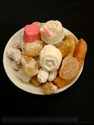 最後,要擺上神明桌的時候,要把所有的糖仔混和,每一盤裡,每一種都要有,而且一定要是 1 個,或是 3 個, 或是 5 個,才可以。這些糖果要等初十五才可以收起來。