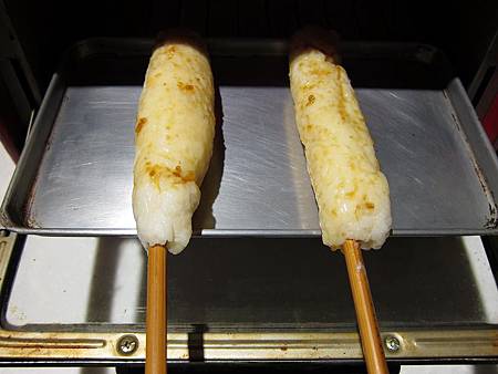 村民們便利用米飯很甜又很Q的特性,把它黏在木棒上烤