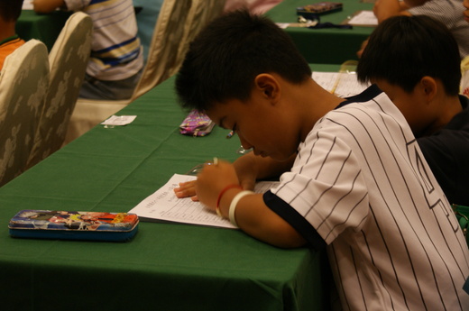 醜媳婦終要見公婆,大會場上鴉雀無聲,只見小朋友手指飛快撥弄,姿勢各異,一聲巨雷吼響「停」,很快的見真章,幾回合下來,答案公佈了,我兒真的名落孫山,真的是「孫山」之後,他的前面一個積分,恰是第五名。