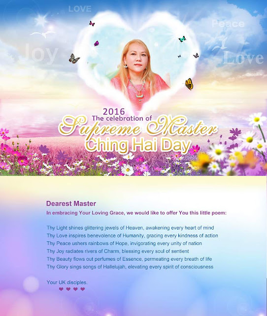 最親愛的清海無上師,全能的Tim Qo Tu–所有世界敬愛的上主,您是所有愛、寬恕和慈悲的初始源頭。我們以永恆無盡的感激之情,感謝您所做的一切及您為所有靈魂得到自由、解脫和安慰所做的無數犧牲。在令人驚嘆的奇妙宇宙裡的所有眾生,與我們一同慶祝這輝煌榮耀的一天,恭敬地祝褔您永遠和平、快樂、身體健康和喜悅無限!