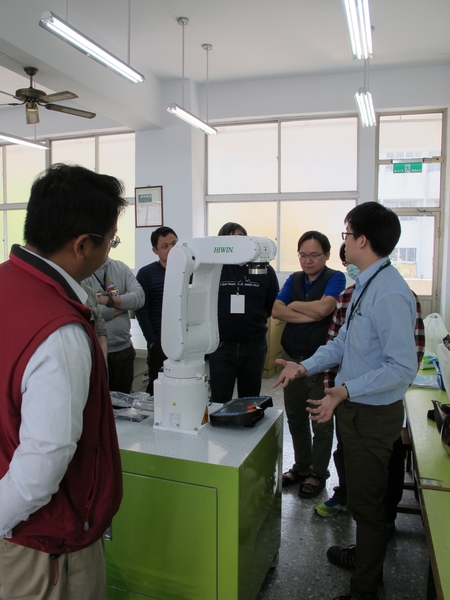 為了讓每位培訓教師有豐富充實學習歷程,特別規劃兩場次,採小班分組共學方式,第一場種子教師培訓於107年3月12日起跑,10位種子教師齊聚臺中高工實習工廠,共同學習如何操作機器手臂。由上銀科技股份有限公司遴派專業工程師蒞臨指導。先透過VR(虛擬實境),讓每位教師能夠親身體驗機器手臂的安裝,讓與會人員覺得十分新奇。接著講師教導大家,運用離線軟體,透過程式語言撰寫,來操縱機器手臂。一個簡單的手臂動作,背後必須有許多的程式語言來控制。一整天的實作課程,每位參與教師,都聚精會神聆聽,收穫滿滿!第二場次也將於3月19日登場,由另外10位種子教師參加培訓。