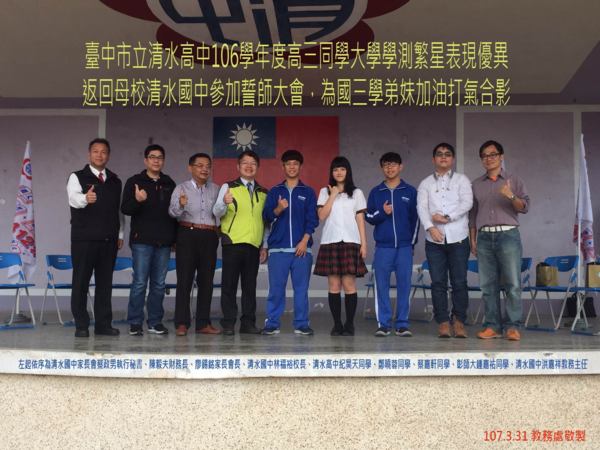 107年3月31日上午107學年大學學測及繁星表現優異同學返回清水國中母校,為學弟妹加油打氣!
