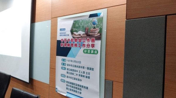 107年5月22日下午13-17時,假台中市立清水高中第一會議室舉辦中彰聯盟前導暨優高學校新課綱實務工作研習,希望能夠從法規實務面,協助大家實際去面對課程及學分規劃。特別邀請國立臺南二中李寶利秘書和國立新豐高中王人傑主任,蒞校分別主講「彈性學習和自主學習規劃」及「學生學習歷程檔案」,共有18校22位師長參加。