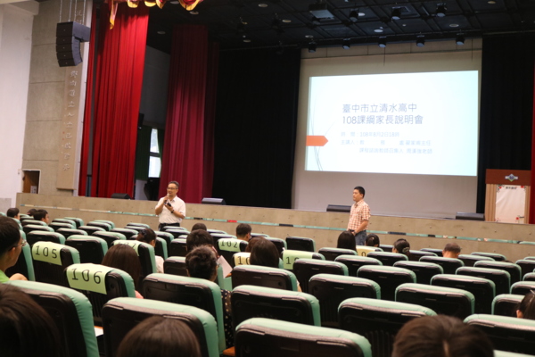 108年8月2日晚上,偌大的清水高中禮堂,今晚坐滿了關心子女教育的高一家長,前來聆聽孩子未來三年會因為新課綱實施而面臨的變化。