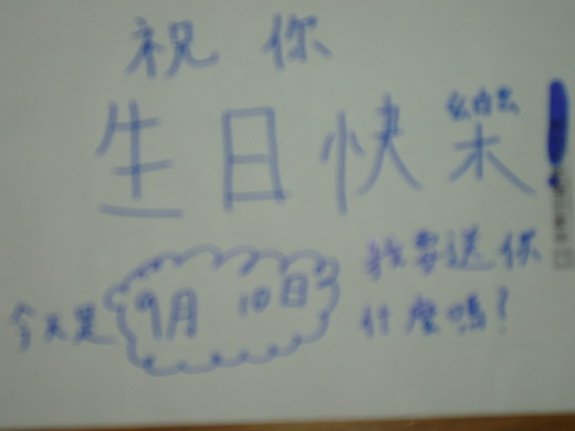 早上一打開NB電脳想開新聞,不期然的看到這張字條夾放在電脳鍵盤上,是兒子用中文寫的生日卡,一瞬間血氣上衝、莫名的感動著。