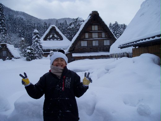 2月間、一家三口從東京坐7個小時的車到金澤、一宿後再往白川村、一片白茫茫、連在東京也難得見到的景色、如詩像畫、空中正下著軟飄飄的雪、我正淘醉在夢的美景中、明駿也忙著做他的雪球、下著雪但不冷、抽著空拿出相機留下難得一見、置身其中的美景。與你共賞。