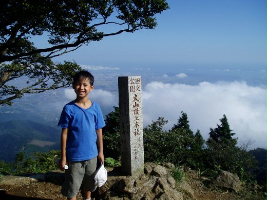 日前台湾島内紅潮洶湧澎湃、在遠方的阿9携家帯眷、為以後強身報國準備、和朋友一家同行到東京近郊神奈川県秦野開始登山、因準備功課有誤、導至路程多2個多小時、大人走的上氣接不了下氣、小孩們則整天像猴子上山林、跳上跳下、跑前跑後、一點也没有上氣下氣的問題。山路有平坦、有険峻、尤其在快到山頂前坡度30度的斜坡、真可有上氣下氣的問題。咬著牙攻上山頂後、才知山上是柳暗花明又一村、有一古神社、古風古香、譲人心礦神爽的是、由山上遠眺神奈川平野、浮雲軽飄、山風微拂、有仙境之感。算算上山下山共走了7多小時。