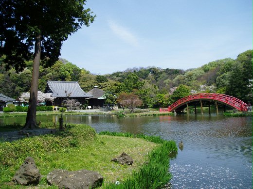 在要去海濱公園的途中有一造景優美的称本寺、園内占地寬廣、紅橋緑林、池塘裏白鵝戯水、是好一幅春景、去挖海瓜子順便可以逛逛的好去處!累了一天、PO相片與大家分享。