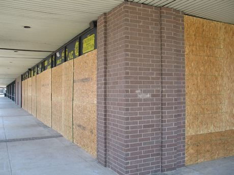 有些店在颶風來臨時將門窗用木板封死既防風又防宵小
