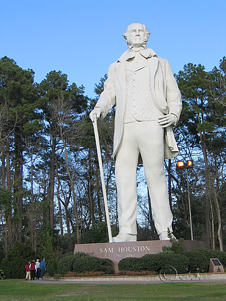 走在美國德州I-45號州際公路上,接近亨茨維爾(Huntsville)時,離它六哩外遠時就看的到的高大的白色塑像,他就是當過兩任德克薩斯共和國總統,也是美國歷史上唯一當過兩個不同州─田納西州與德克薩斯州州長的山姆休士頓(Sam Houston 1793-1863)。