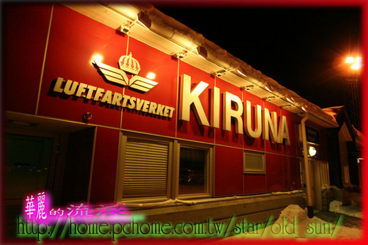 乘上機場巴士,我們瀏覽Stockholm的方式,由雙腳緩慢的張望變成迅速的窗景。除了速度加快之外,巴士的高度也增加不少,我們的目光,剛好落在商店看板上,隨著車子在市區內走走停停,於是展開一場古典與創意交錯的看板欣賞之旅,十分有趣。隨著車子離開市區,車窗外變成空曠的農牧雪景,也許是海風不弱,牧場之間有像防風林般的成排樹木,有點像放大的西海岸景觀。加上隨之而來的夕照,就更像了。夜色裡,我們的目光從車窗,換成飛機小巧的窗。機窗外的景緻,隨著飛機攀升,變的難以用文字形容。人間的燈火如黃寶石般,鑲在雪白的地毯上熠熠生光。公路則以黑色的幾何的線條,構圖串連黃寶石。更遠些,月光與星光微微覆蓋雪原上,將純淨無污染的大地,映照的十分清晰,讓人錯以為還是白天。黑色的夜,卻有清晰的影像,或許用"夢幻"稍微接近我們看見的。經過一次我們本來不知道的轉機,若不是身旁的Kiruna工人說明,還差一點點就下飛機了。從窗口外望,居然在洗飛機,我們猜想是在替飛機除冰吧,又是一件難得的經驗。隨著飛機的起降,我們深入北極圈內的Kiruna,深夜的機場,隨著旅客的離去,隨著零下20幾度的低溫,更加顯的空無冷清。來到機場外,發現計程車是唯一的交通工具,我們馬上向現場唯一的計程車走去。向司機詢問得到,已被預約,而且除非叫車不然這麼晚了不會有車子進入。好心的司機大叔,幫我們叫了一輛計程車,解決不知如何叫車的困境。與司機大叔聊到,我們來自台灣,司機大叔馬上興奮地說"他很欣賞一位台灣歌手",隨即打開音響,甜蜜蜜你笑得甜蜜蜜,好像花兒開在春風裡,開在春風裡在那裡在那裡見過你,是鄧麗君甜美的歌聲。任誰也沒想到,流浪到北極圈,還能從不懂中文的瑞典人車中,獲得音樂無國界的溫暖。這一切便發生在照片裡,機場外的KIRUNA大字前面。