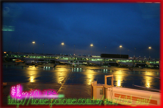 因為朋友下午有課程,必須等下課後才能出發。雖然學校在市區內,但離車站還是有一段距離,加上一連幾天的行李,使得我們的步履,顯的相當匆忙。幸好趕上列車,如期搭上班機來到Amsterdan。一樣是搭乘便宜班機,一樣沒提供餐點,但我們已經是有經驗的的老鳥,我們自己提供自己餐點。還陶醉在自己所準備的餐點之中,機長便廣播準備降落,只好趕緊收拾乾淨。來到Amsterdan機場,聽說許多朋友來歐洲,都是以此為門戶,然後再轉往目的地。原以為人潮會相當擁擠,甚至還可遇到一些同鄉,但人潮沒想像中多,加上窗外細雨迷離,整個感覺略顯冷清,雖然出發前就知道天氣不好,甚至暱稱此旅程為''淒風苦雨告別之旅''。