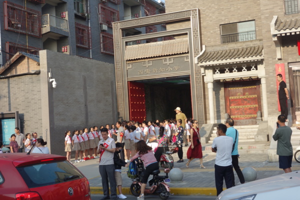 兵馬俑是西安最具國際知名度的景點.一般到西安旅遊.都會安排到兵馬俑參觀.雖然.十幾年前曾經到過兵馬俑.然而.今天仍要重遊.要到兵馬俑.最方便又省錢的方式.是到西安火車站前.搭公交車前往.我們要到西安火車站.由七賢國際青旅旁的北新街步行.看到許多小學校.正熱鬧著舉辦迎新活動.