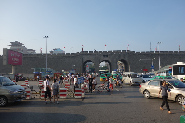 西安火車站位於西安城牆的尚德門外側.交通繁忙.昨天.機場大巴由這裡進入西安市區的解放路.曾在這裡堵車許久.